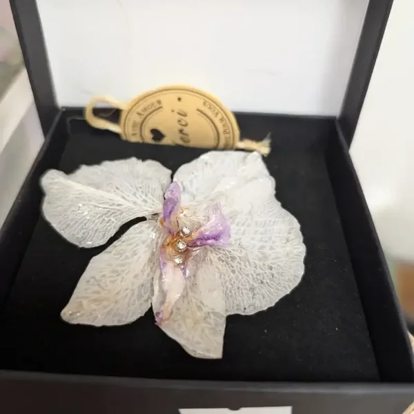 Idéal pour celles qui recherchent un bijou raffiné, élégant et lumineux, ce collier en argent avec orchidée blanche et cristaux est parfait pour apporter une touche de fraîcheur et de sophistication à vos tenues.
